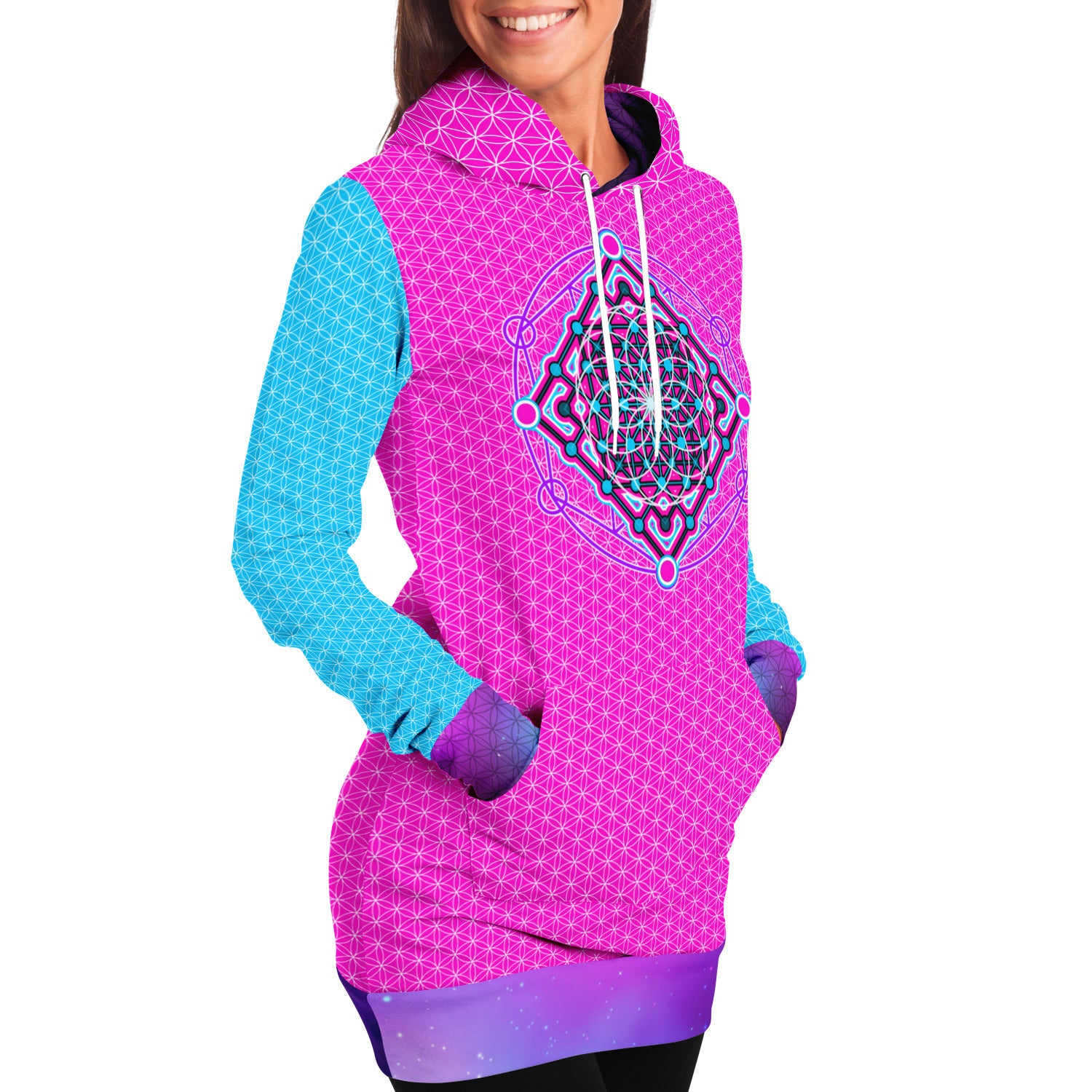 This longline hoodie is made from a premium polyester and spandex blend, making it both comfortable and durable. Fitted with a feminine shaped silhouette for ultimate comfort. Each panel is individually printed, cut and sewn to ensure a flawless graphic with no imperfections.